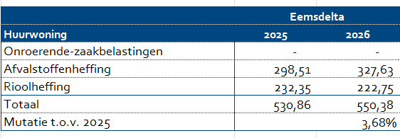 De lokale lasten voor een huurwoning zien er als volgt uit: