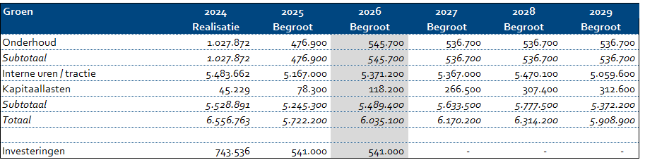 De beschikbare middelen voor het product groen: exploitatielasten en investeringen worden de komende periode verder geharmoniseerd.