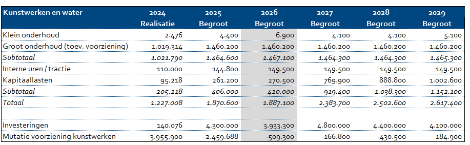De beschikbare middelen voor het product kunstwerken: exploitatielasten, investeringen en reserve zullen de komende periode verder worden geharmoniseerd.