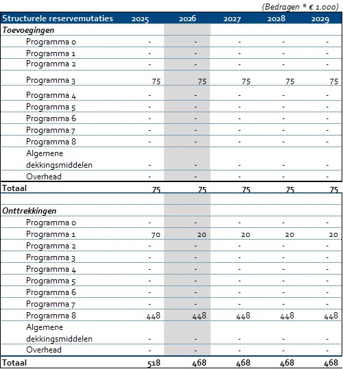 Overzicht beoogde structurele toevoegingen en onttrekkingen aan reserves (art. 19d en 23c BBV)
