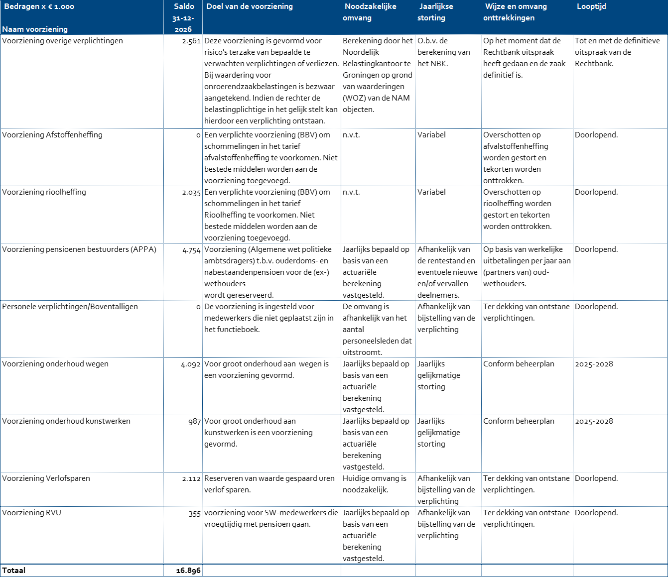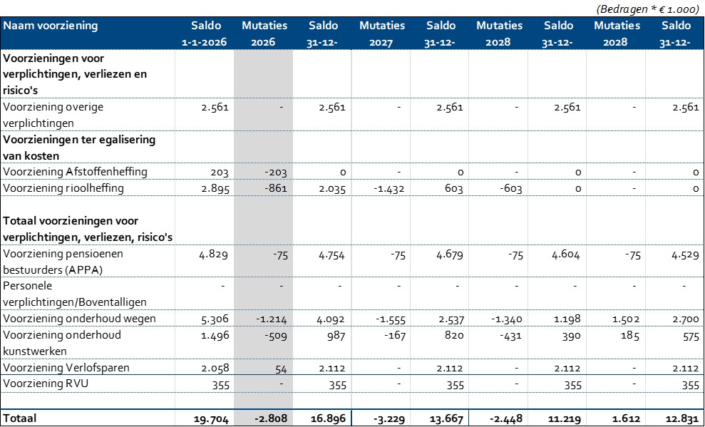 Toelichting voorzieningen