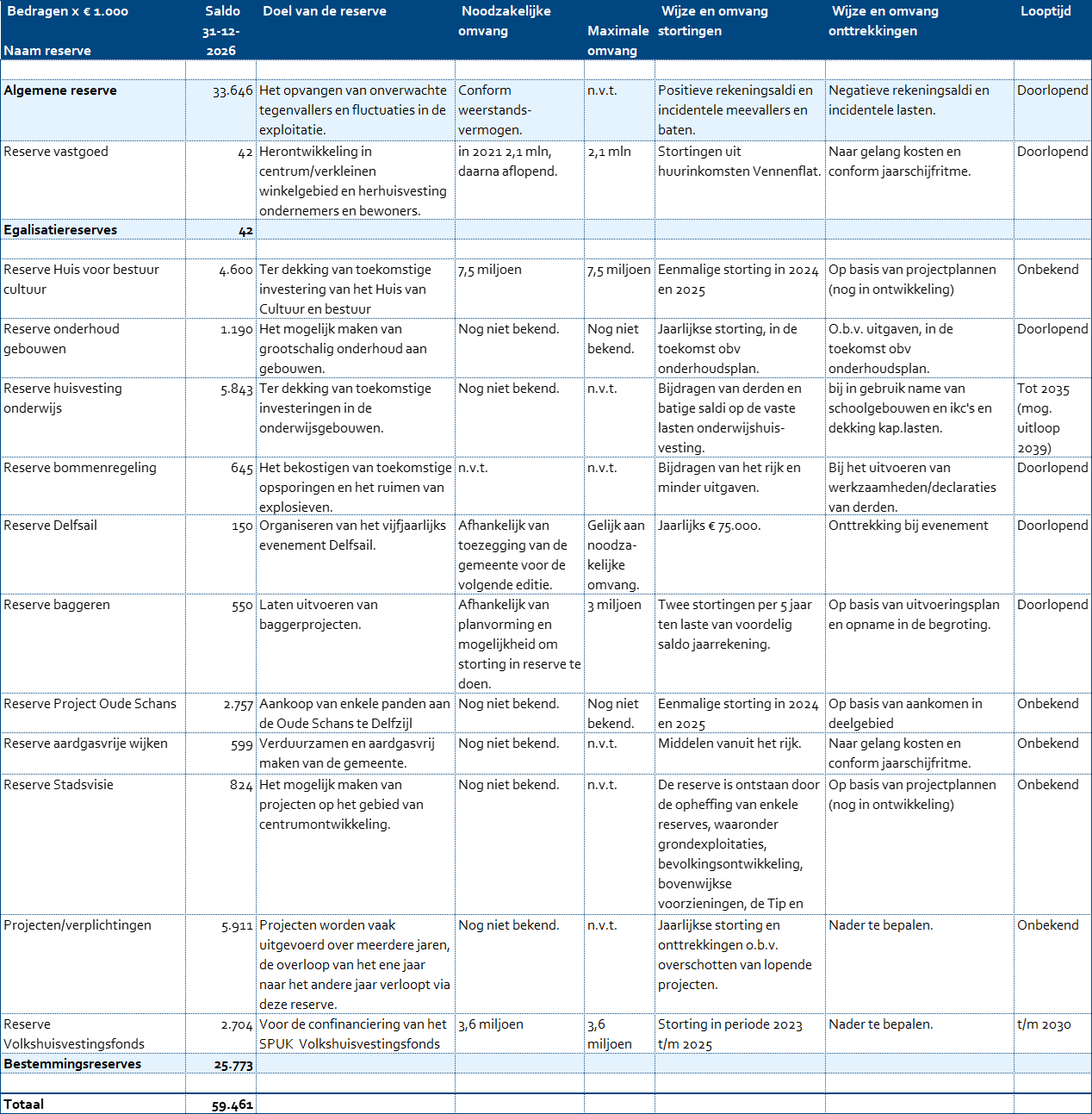 Toelichting reserves