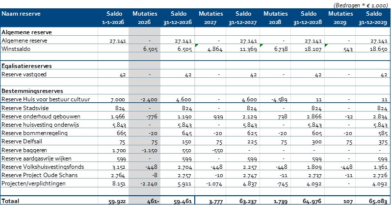 Het beleid met betrekking tot reserves en voorzieningen is vastgelegd in de nota 'Reserves en Voorzieningen 2021'. In het onderstaand overzicht worden de meerjarige wijzigingen van de reserves gespecificeerd. Vervolgens worden de reserves nader toegelicht.