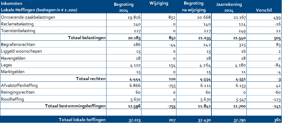 De geraamde en gerealiseerde inkomsten voor 2024 zien er als volgt uit: