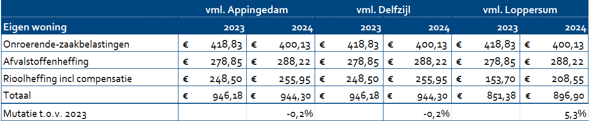 > de wijziging van de compensatie rioolheffing (alleen in de voormalige gemeente Loppersum tot en met 2024).