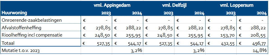 De lokale lasten voor een huurwoning zag er in 2024 als volgt uit: