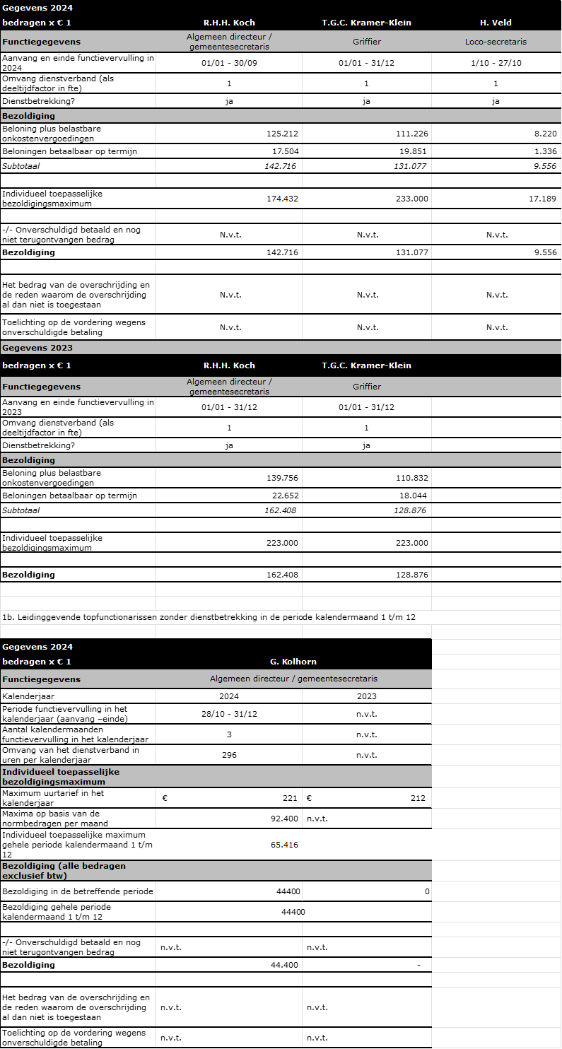 Naast de hierboven vermelde topfunctionarissen zijn er geen overige functionarissen met een dienstbetrekking die in 2024 een bezoldiging boven het individueel toepasselijke drempelbedrag hebben ontvangen.