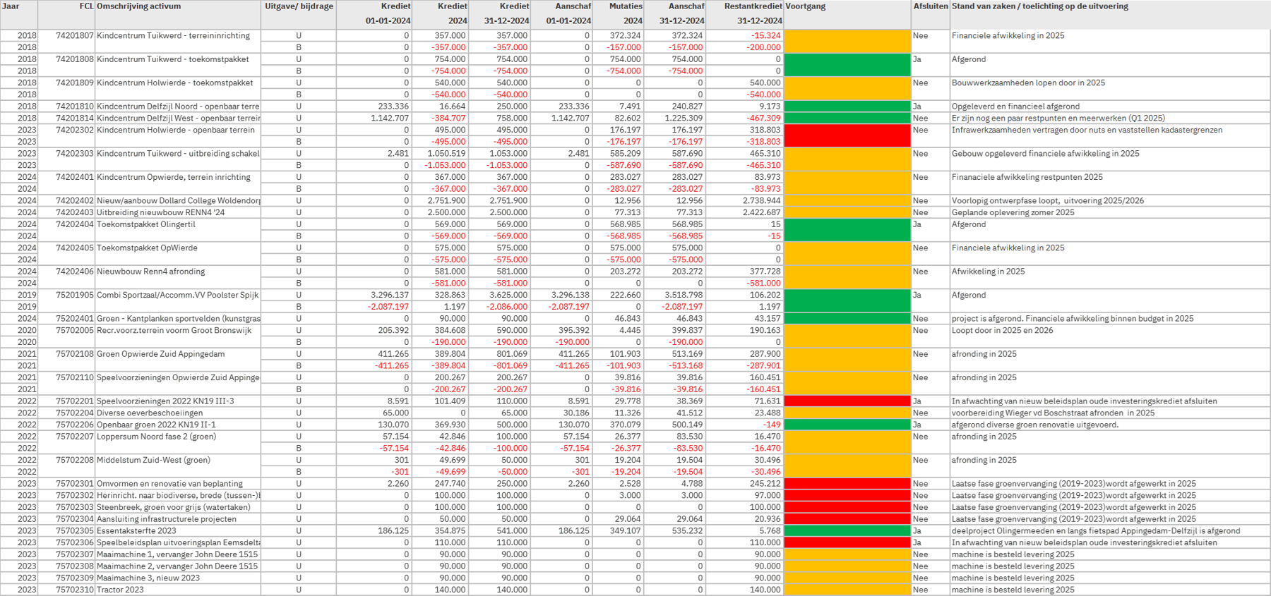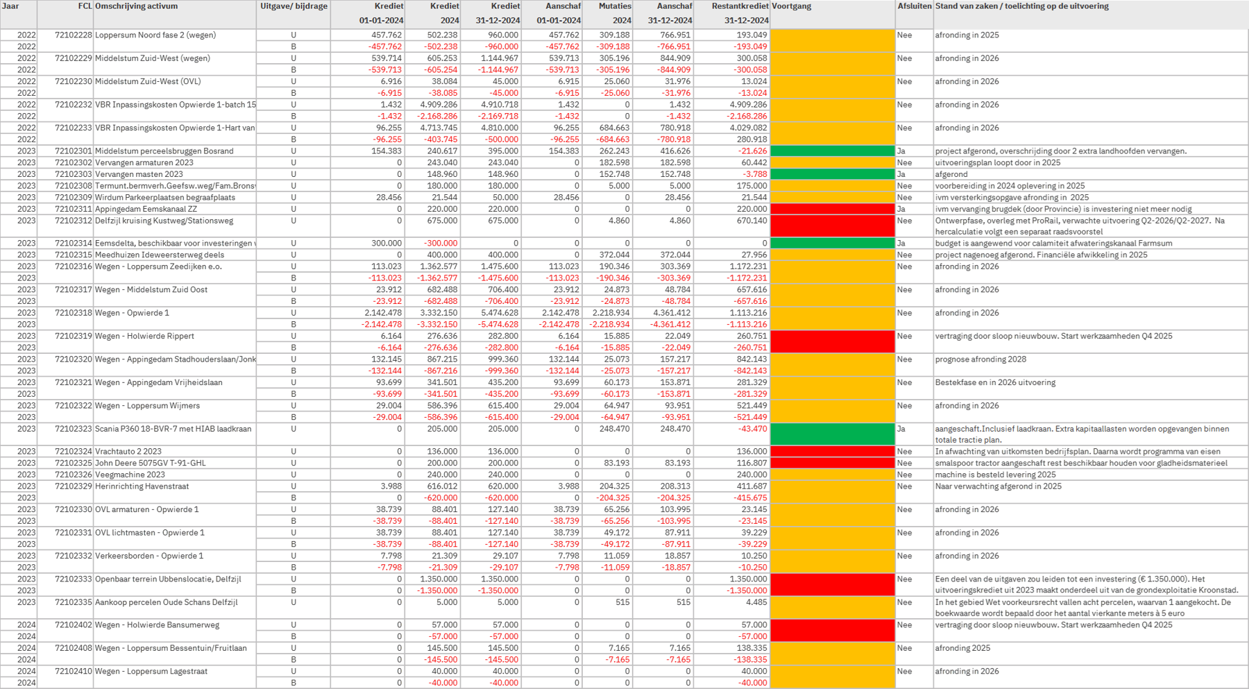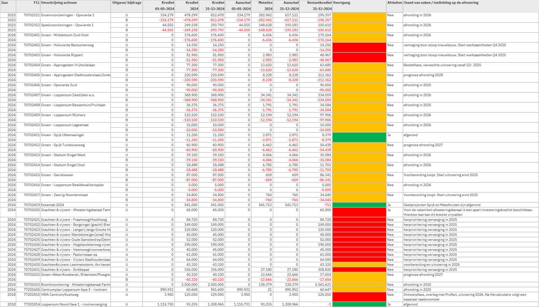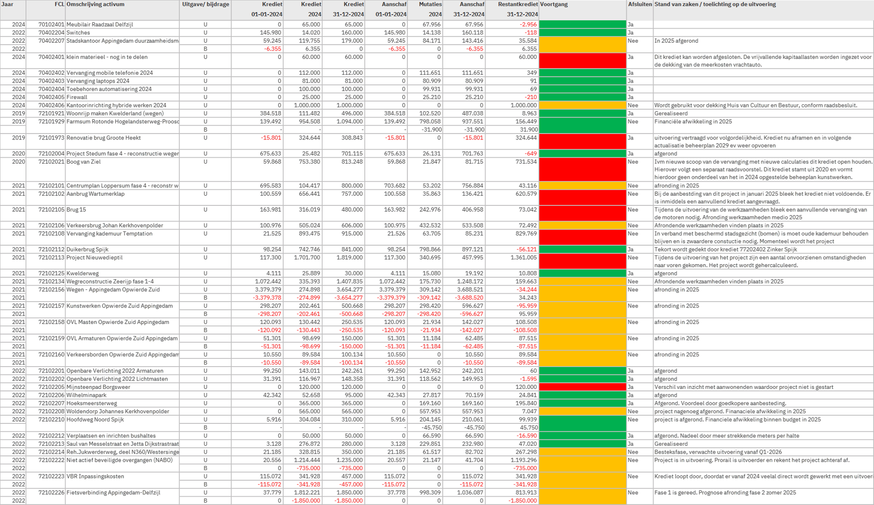 Nog te autoriseren begrotingsoverschrijdingen